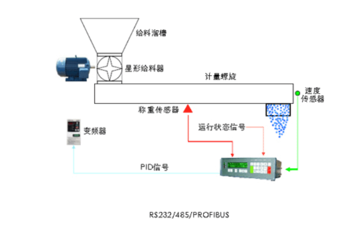 螺旋稱重定量給料機(jī)用于對(duì)散狀物料的定量給料,給料過程為螺旋旋轉(zhuǎn)連續(xù)給料,將來自于用戶給料倉(cāng)或其他給料設(shè)備的物料輸送并通過稱重橋架進(jìn)行重量檢測(cè);同時(shí)裝于端部的測(cè)速傳感螺旋體進(jìn)行速度檢測(cè);被檢測(cè)的重量信號(hào)及速度信號(hào)一同送入稱重控制器進(jìn)行微積分處理并顯示以噸每小時(shí)為單位的瞬時(shí)流量及以噸為單位的累計(jì)量。